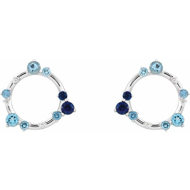 Platinum Natural Blue Multi Gemstone and .03 Carat Natural Diamond Circle Earrings