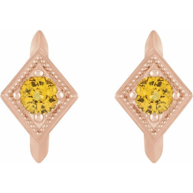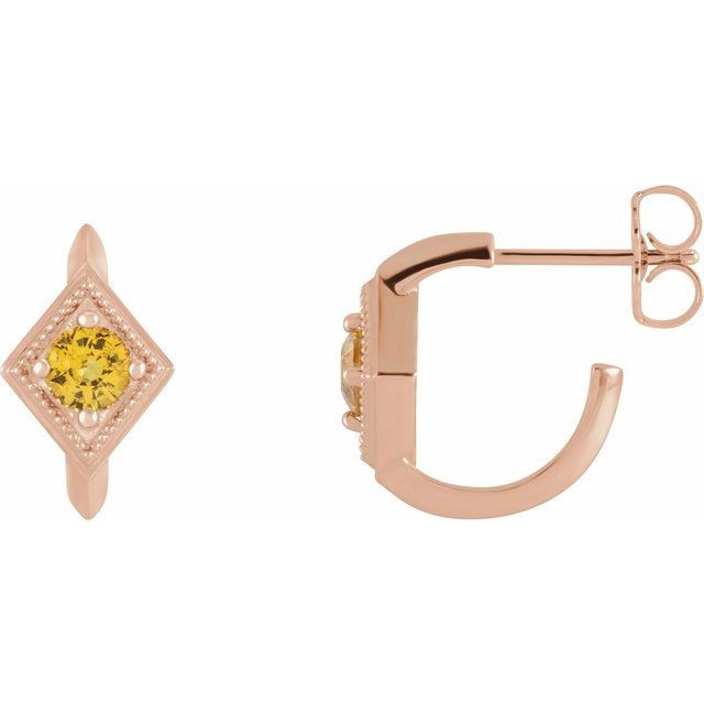 14 Karat Rose Gold Natural Yellow Sapphire Geometric Hoop Earrings Comes Set With
