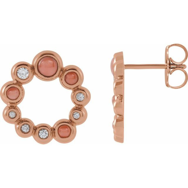 Pink Coral Earrings in 14 Karat Rose Gold Pink Coral and 0.13 Carat Diamond Earrings