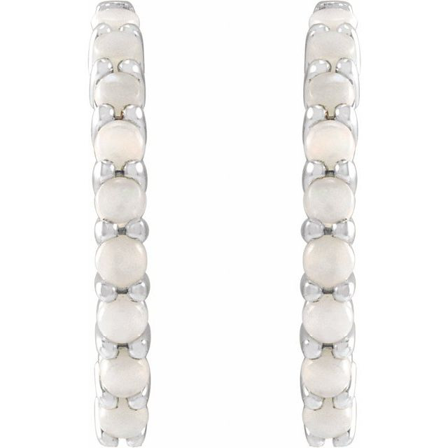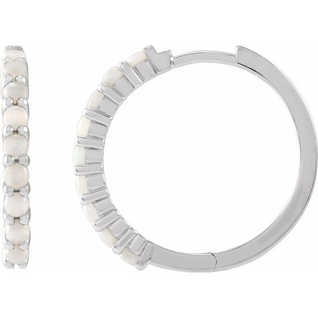 14 Karat White Gold 20 mm Natural White Opal Huggie Hoop Earrings