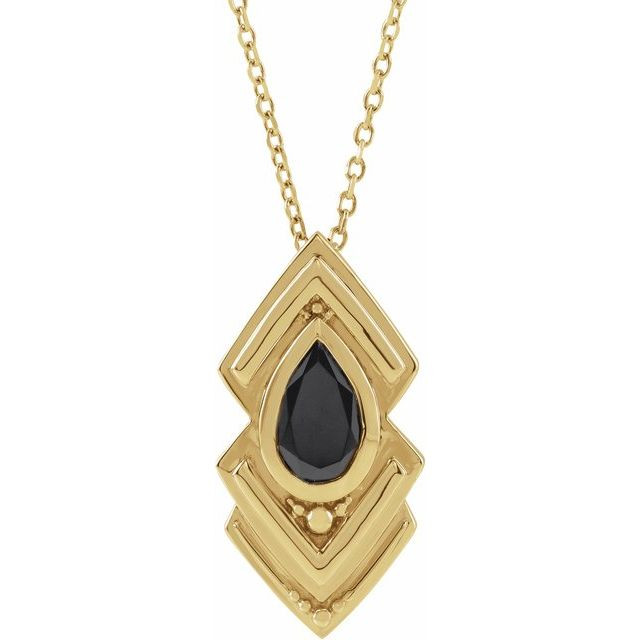 14 Karat Yellow Gold Natural Black Onyx Geometric 16 inch Necklace
