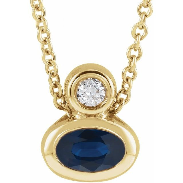 14 Karat Yellow Gold 5x3 mm Oval Lab-Grown Blue Sapphire & .03 CT Diamond 16 inch Necklace Comes Set With