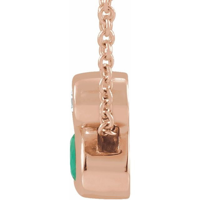 14 Karat Rose Gold 5x3 mm Oval Natural Emerald and .03 Carat Natural Diamond 16 inch Necklace