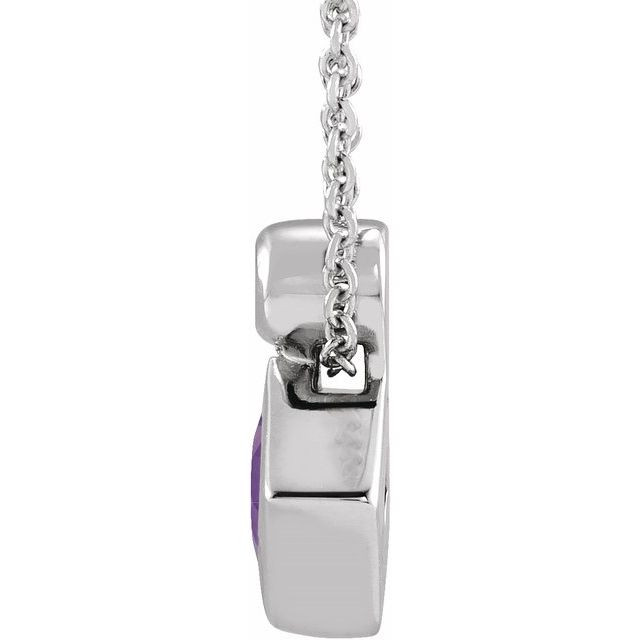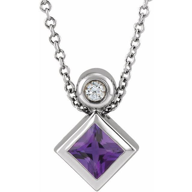 14 Karat White Gold 4 mm Square Natural Amethyst and .03 Carat Natural Diamond 16 inch Necklace