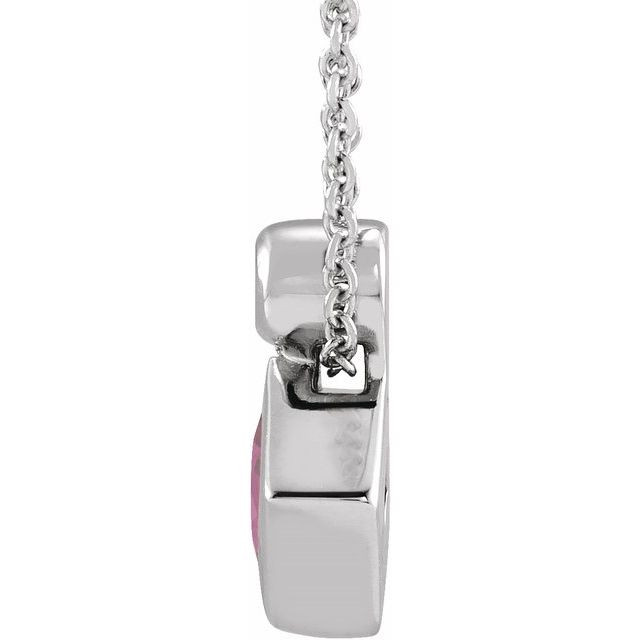 14 Karat White Gold 4 mm Square Pink Tourmaline and .03 Carat Diamond 16 inch Necklace