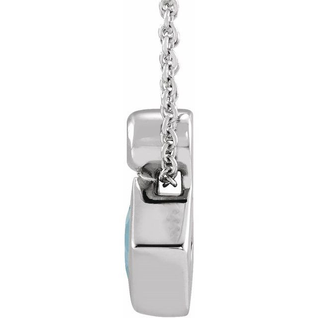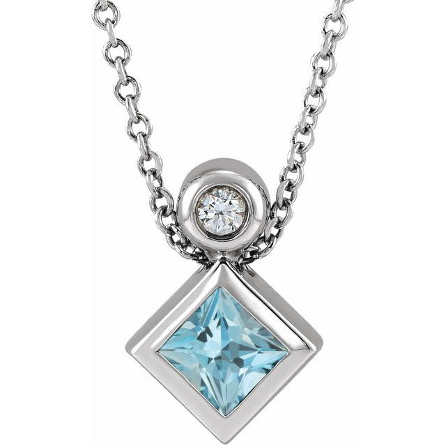Platinum 4 mm Square Aquamarine Gem and .03 Carat Diamond 16 inch Necklace