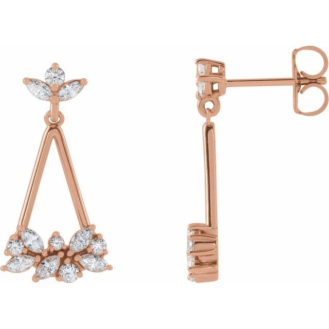 14 Karat Rose Gold 0.60 Carat Diamond Geometric Cluster Earrings
