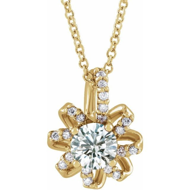 14 Karat Yellow Gold Natural White Sapphire & .07 CTW Natural Diamond Halo-Style 16 inch Necklace Comes Set With