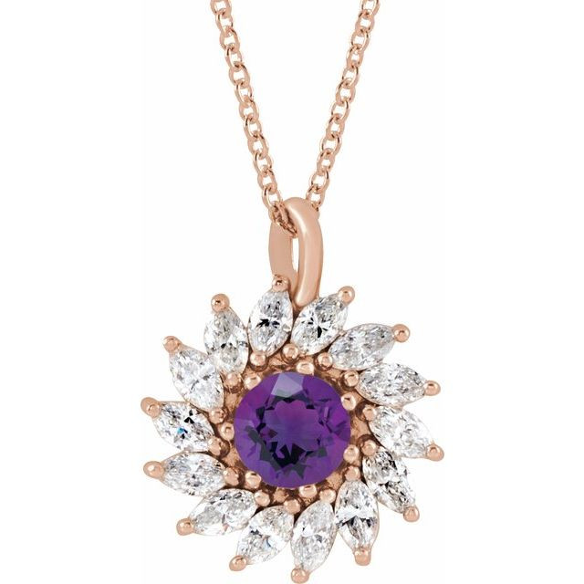 14K Rose Natural Amethyst & 5/8 CTW Natural Diamond Halo-Style 16 inch Necklace Comes Set With