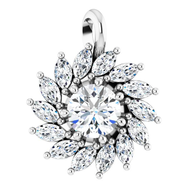 Platinum White Sapphire and 0.60 carat Diamond Halo Style Pendant