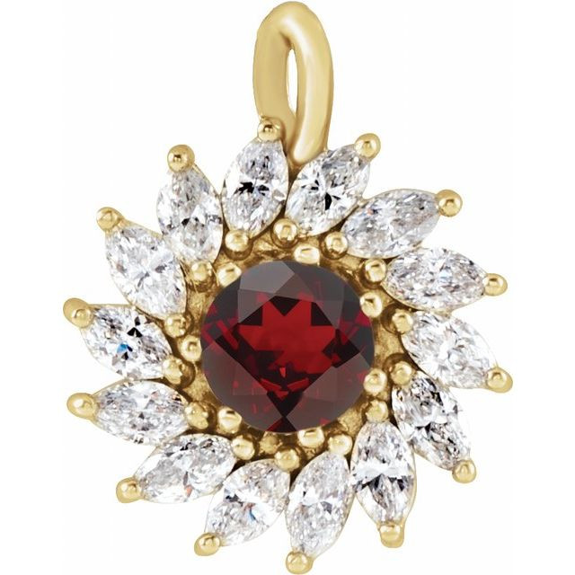 14K Yellow Natural Mozambique Garnet & 5/8 CTW Natural Diamond Halo-Style Pendant Comes Set With