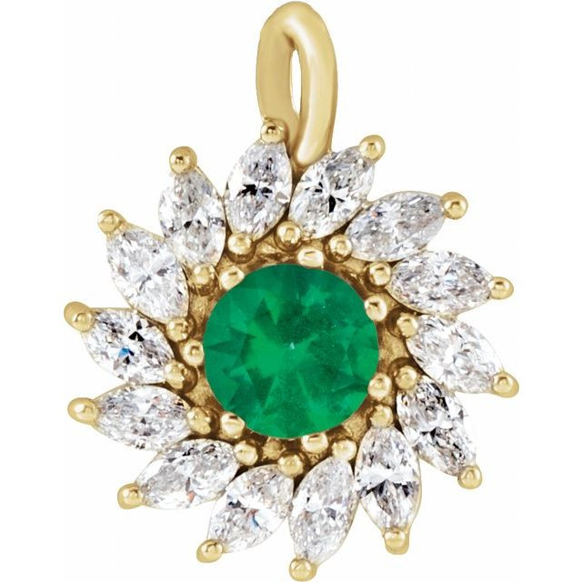 14K Yellow Lab-Grown Emerald & 5/8 CTW Natural Diamond Halo-Style Pendant Comes Set With