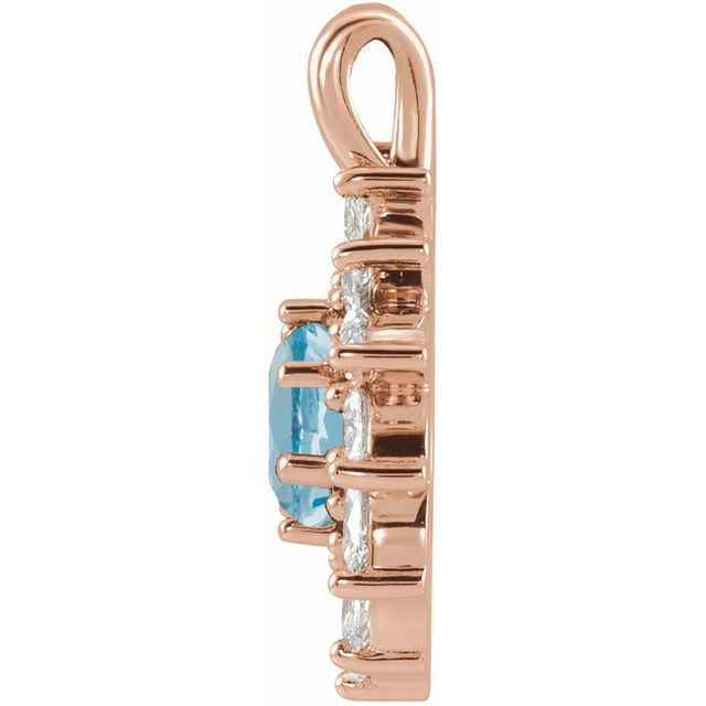 14 Karat Rose Gold Aquamarine Gem and 0.50 carat Diamond Halo Style Pendant