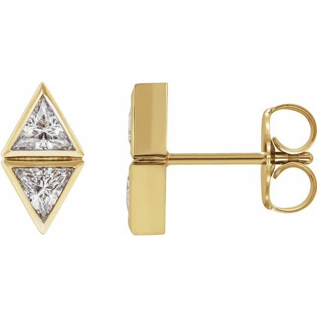 This beautiful 14 Karat Yellow Gold 0.25 Carat Diamond o-Stone Bezel-Set Earrings - Lovely Triangle Diamond Earrings is a timeless jewelry item made in the highest standards for Diamond Fashion jewelry