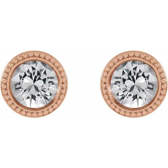 14 Karat Rose Gold 3 mm Natural White Sapphire Beaded Bezel-Set Earrings Comes Set With