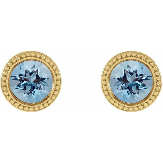 14 Karat Yellow Gold 3 mm Natural Aquamarine Beaded Bezel Set Earrings
