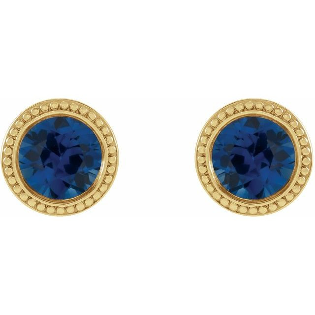 14 Karat Yellow Gold 3.5 mm Natural Blue Sapphire Beaded Bezel Set Earrings