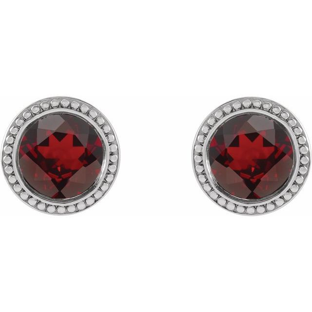 Platinum 4.5 mm Natural Mozambique Garnet Beaded Bezel-Set Earrings Comes Set With