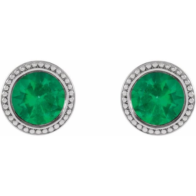 Platinum 5 mm Lab-Grown Emerald Beaded Bezel-Set Earrings Comes Set With