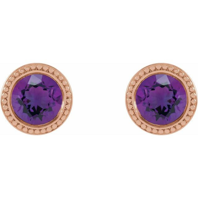 14 Karat Rose Gold 4 mm Natural Amethyst Beaded Bezel-Set Earrings Comes Set With