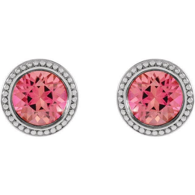 Platinum 6 mm Natural Pink Tourmaline Beaded Bezel-Set Earrings Comes Set With