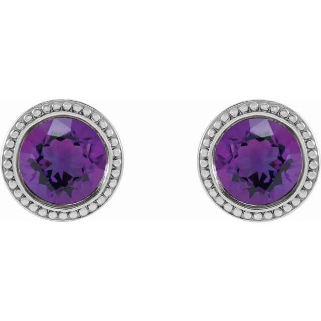 14 Karat White Gold 6 mm Natural Amethyst Beaded Bezel Set Earrings