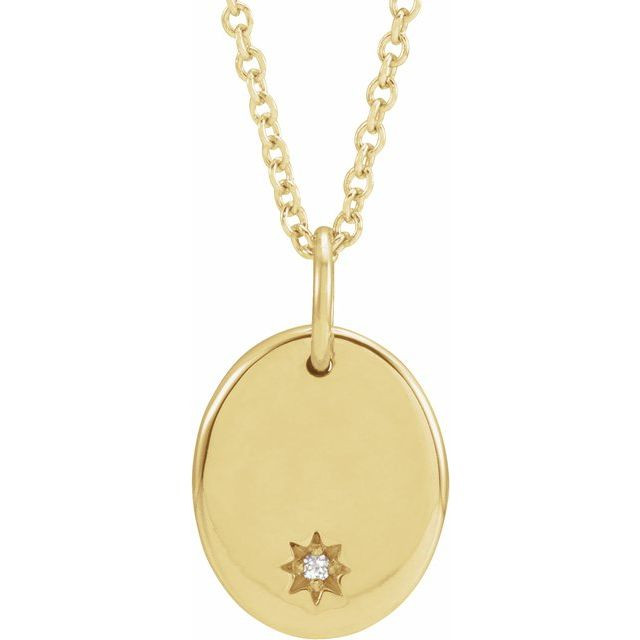 Natural Diamond Necklace in 14 Karat Yellow Gold .005 Carat Diamond Starburst 16 inch Necklace