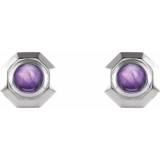 Platinum Natural Amethyst Geometric Cabochon Earrings Comes Set With