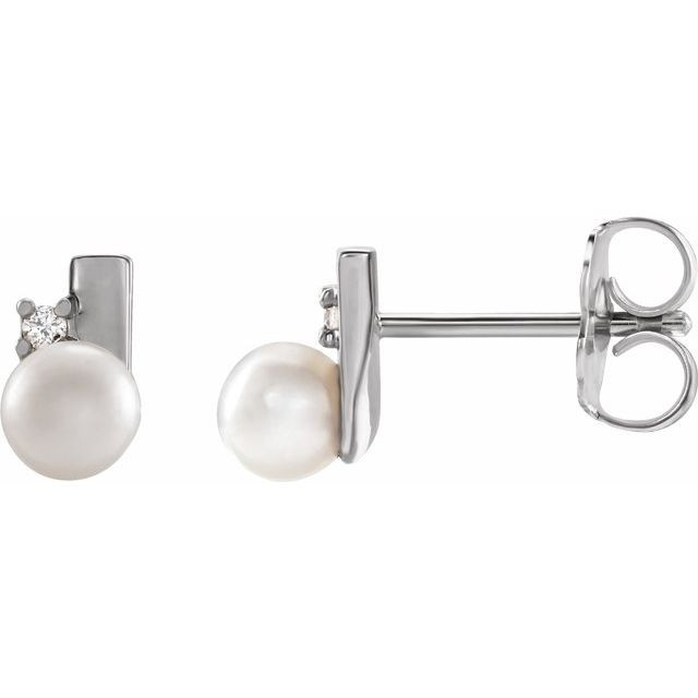 Sterling Silver Cultured Akoya Pearl and .03 Carat Diamond Geometric Earrings