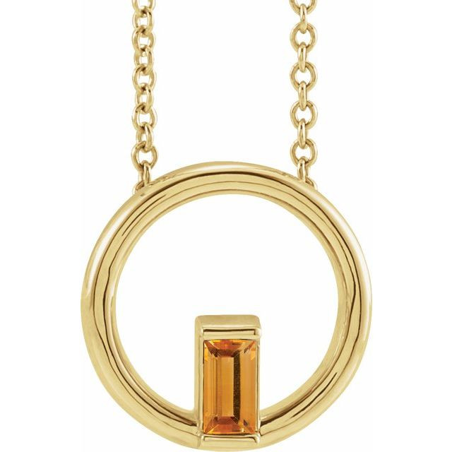14 Karat Yellow Gold Natural Citrine Circle 16 inch Pendant