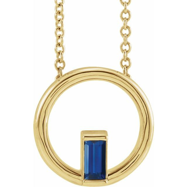 14 Karat Yellow Gold Natural Blue Sapphire Circle 16 to 18 inch Pendant