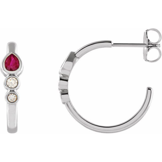 This beautiful Platinum Ruby & 0.10 Carat Diamond Bezel-Set Hoop Earrings - Classy Pear Ruby Earrings is a timeless jewelry item made in the highest standards for Gemstone Fashion jewelry