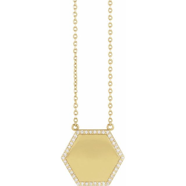 14K Yellow 1/10 CTW Natural Diamond Hexagon 16 inch Necklace Comes Set With
