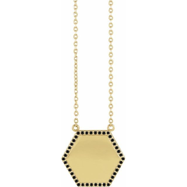 14K Yellow 1/10 CTW Natural Black Diamond Hexagon 18 inch Necklace Comes Set With