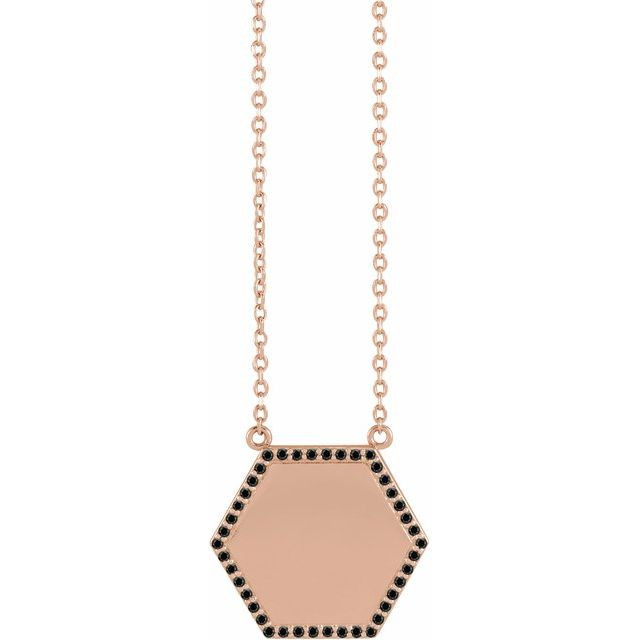 14 Karat Rose Gold 0.10 Carat Black Diamond Hexagon 18 inch Necklace