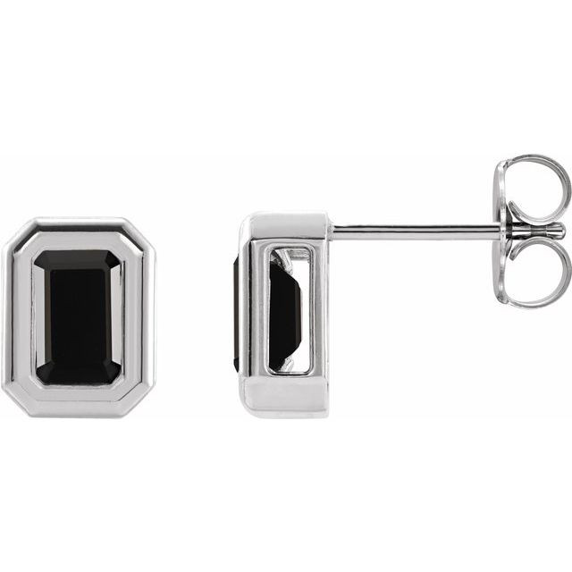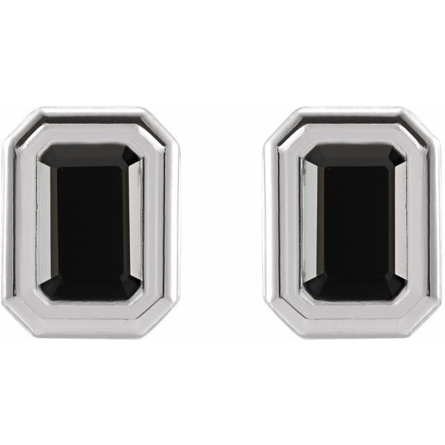 Platinum Natural Onyx Solitaire Earrings Comes Set With