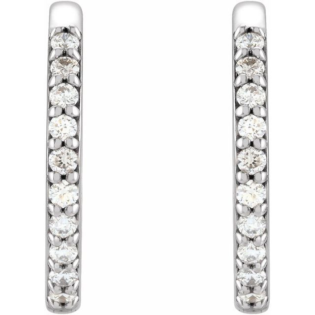 Platinum 0.16 Carat Natural Diamond 15 mm Huggie Earrings