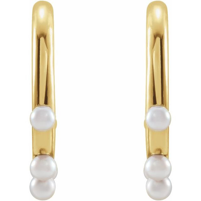 14 Karat Yellow Gold Cultured Seed Pearl Hoop Earrings