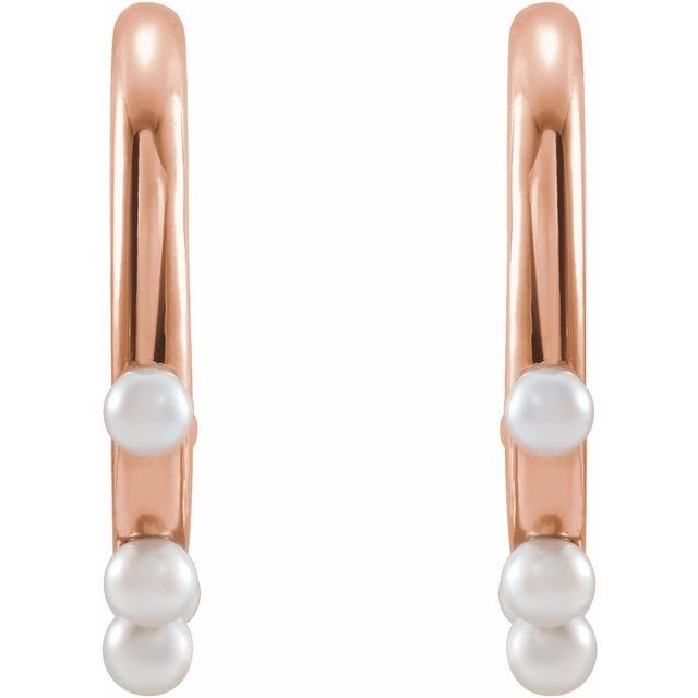 14 Karat Rose Gold Cultured Seed Pearl Hoop Earrings Comes Set With