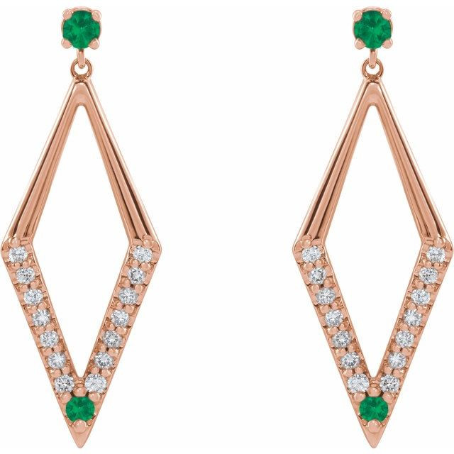 14 Karat Rose Gold Natural Emerald and 0.40 Carat Natural Diamond Geometric Earrings