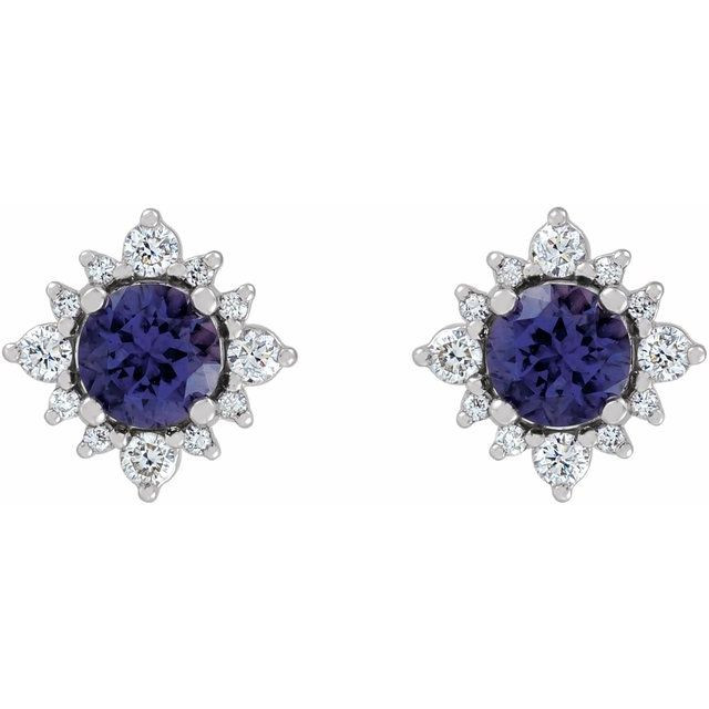 14 Karat White Gold 6 mm Natural Iolite & 0.20 Carat Natural Diamond Halo-Style Earrings Comes Set With