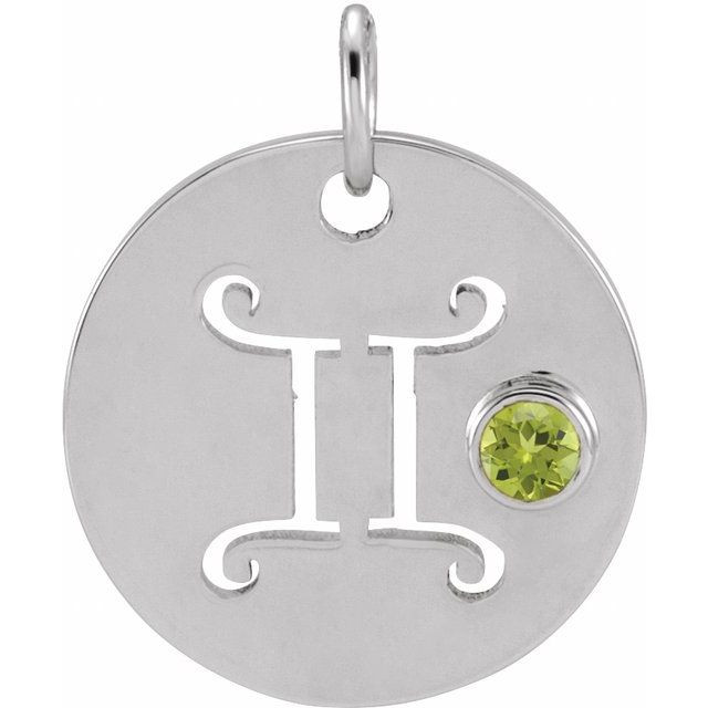 14 Karat White Gold Peridot Gemini Zodiac Pendant
