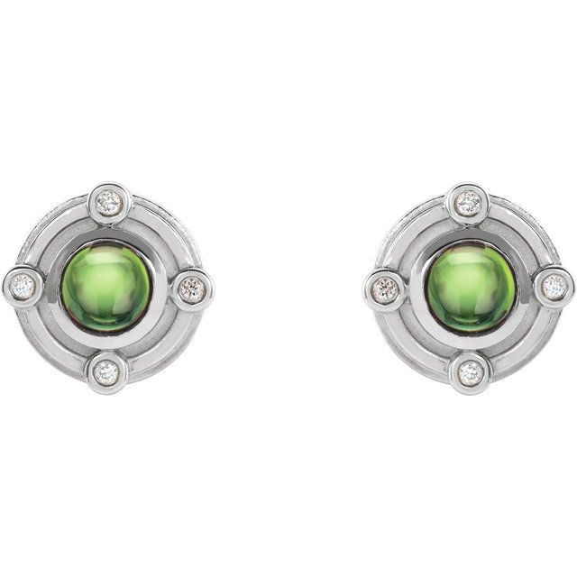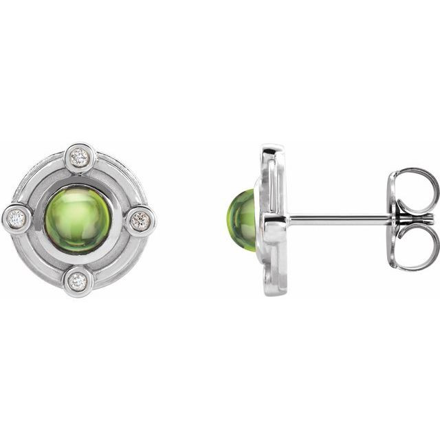 Sterling Silver Natural Peridot and .03 Carat Natural Diamond Earrings