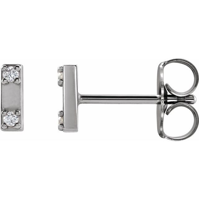 14 Karat White Gold .03 Carat Natural Diamond Two-Stone Bar Earrings Comes Set With