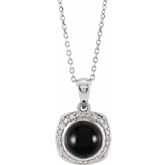 14K White Natural Black Onyx & 1/8 CTW Natural Diamond Halo-Style 16 inch Necklace Comes Set With