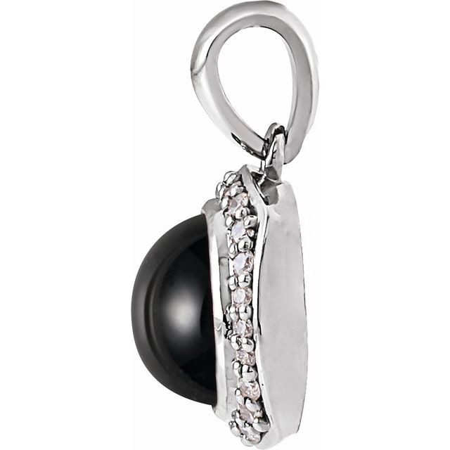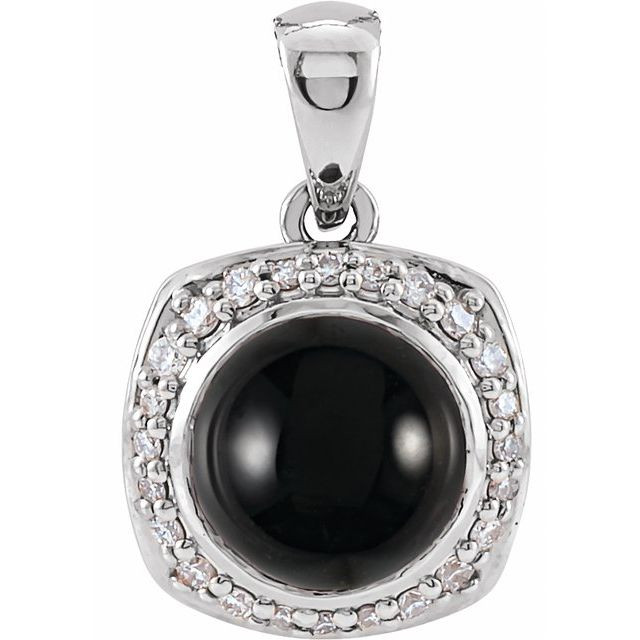 Platinum Natural Black Onyx & 0.12 Carat Natural Diamond Halo-Style Pendant Comes Set With
