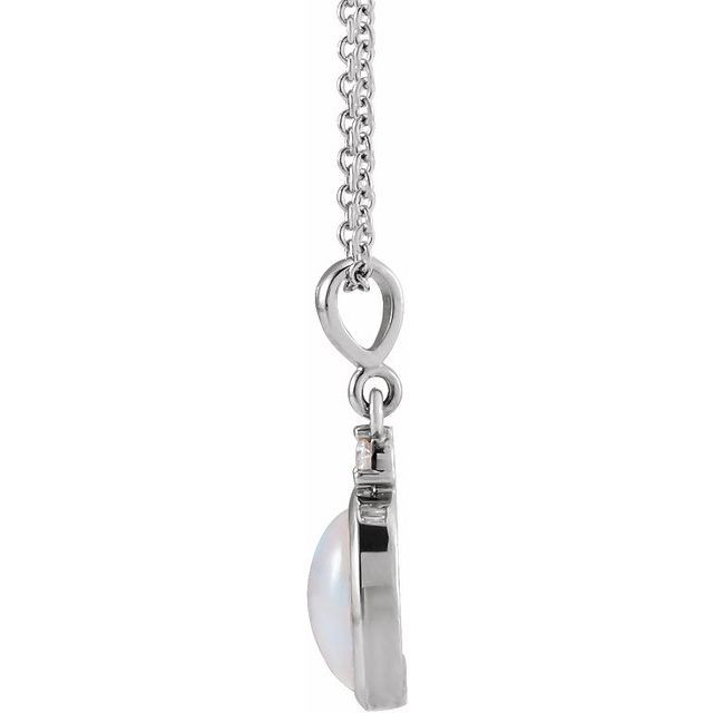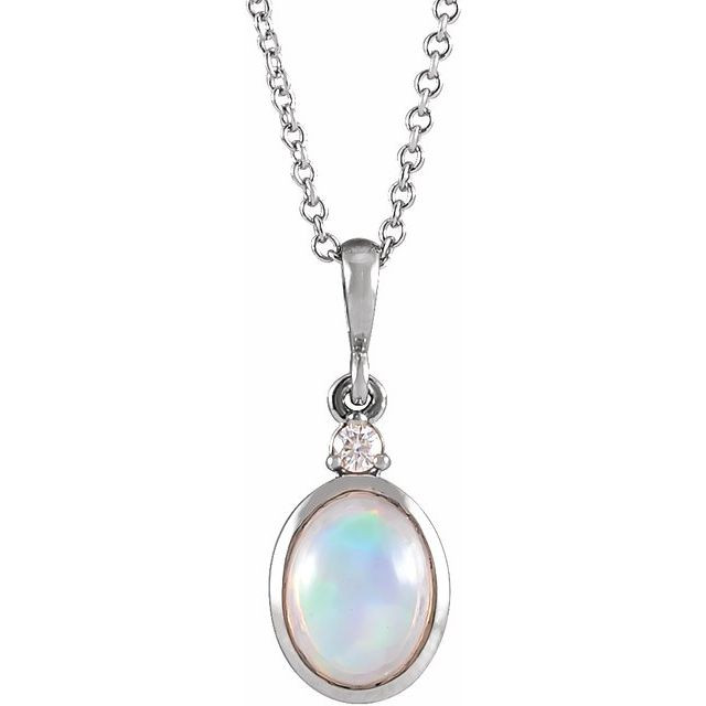 Platinum 6x4 mm Natural White Ethiopian Opal & .015 Carat Natural Diamond 16 inch Necklace Comes Set With