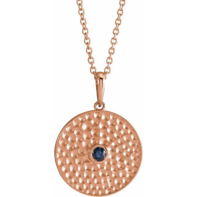 14 Karat Rose Gold Lab Grown Blue Sapphire Beaded Disc 16 inch Necklace
