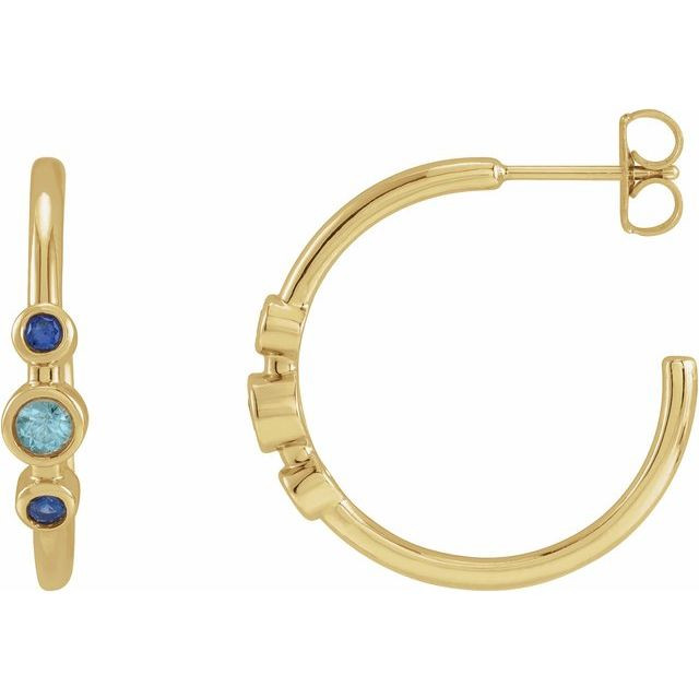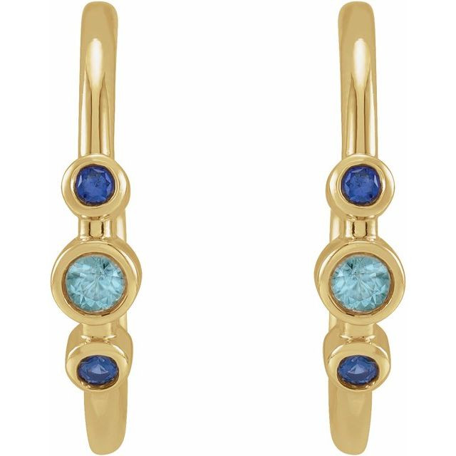 14 Karat Yellow Gold Natural Blue Zircon & Natural Blue Sapphire Bezel-Set Hoop Earrings Comes Set With