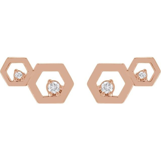 14 Karat Rose Gold .08 Carat Natural Diamond Honeycomb Earrings